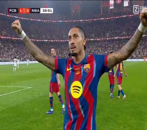 西班牙超級杯決賽,巴塞羅那對陣皇家馬德里,上半場拉菲尼亞破門為巴薩取得領先,至此,拉菲尼亞12次對陣皇馬已打入...
